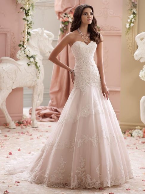 Hey everyone!! Does anybody else plan on wearing a pink dress? Show me some ideas! I'm not sure if I want to go bold or do a more subtle pink with brighter accessories like my "FH" is suggesting. Did you have to get it custom made?