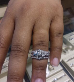 Let’s see those wedding bands ! my engagement ring is a pear shaped Vera wang, after looking at a few bands I decided to go with a Vera wang band but I’m having a hard time choosing between the two.. choice #1 Choice #2