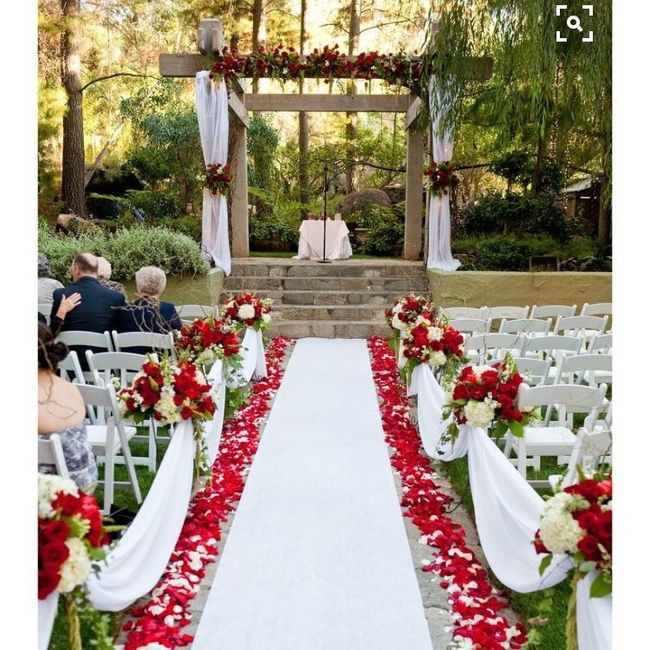 So I'm up in the air about what I want to do with my ceremony decor. My ceremony will be outside. I can't decide whether I want a flower arch, aisle decor, flower petals, or pedestals of flowers if that makes sense. So show me your ceremony decor or...