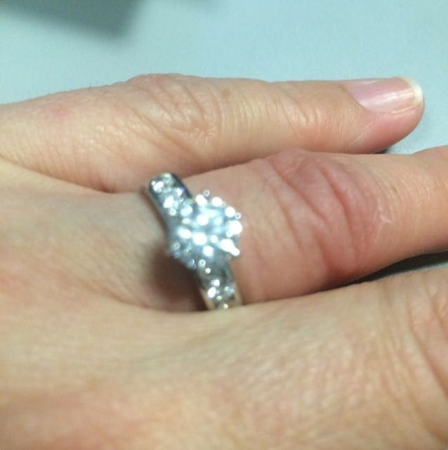 The wedding band I ordered was delivered today and is a bit thinner than my engagement ring. It fits perfectly and I think it complements the engagement ring but I wanted some second opinions!