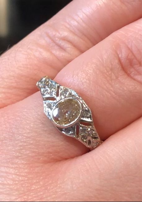 Hi friends! Just another ring post but I was curious how many brides had rings witH both history and bling? Mines from 1910, champagne oval diamond (it changes color with lights), set in platinum with 14 side diamonds set in platinum but also yellow...