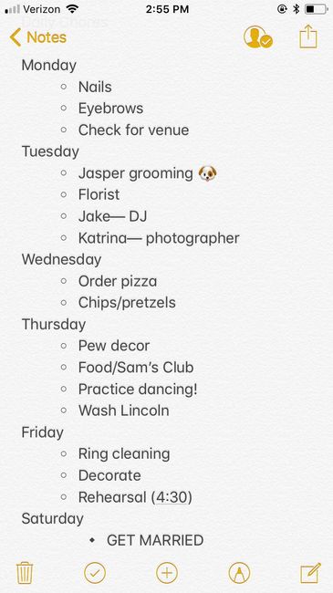 I'm so excited for all this planning and headache to be over and just have the wedding! Is there any last minute things you guys recommend to do?