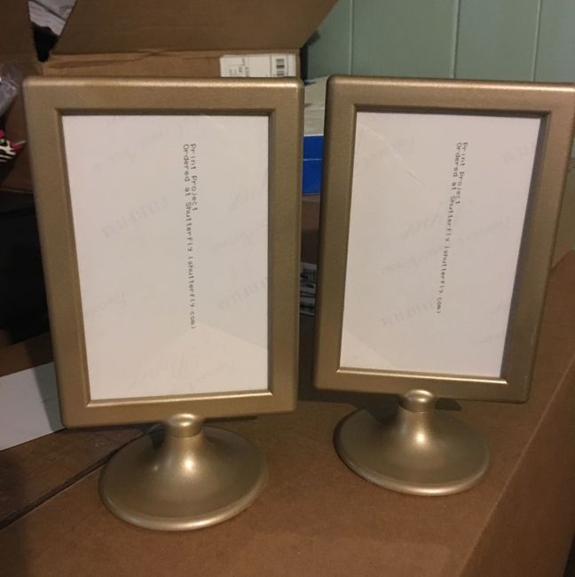 Here is the start of my table numbers. I bought the frames from IKEA for $1 each. A little rose gold spray paint and boom! I love them!