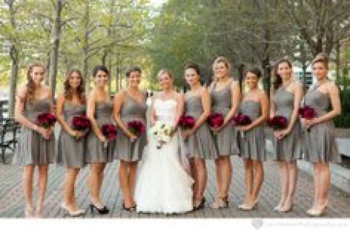 FH was thinking to have his GM in medium gray suits with burgundy ties and himself in a charcoal suit with a black tie, but he's wondering if it would be too much gray since the BM dresses are a gray-ish blue color. I've attached two pictures of my...