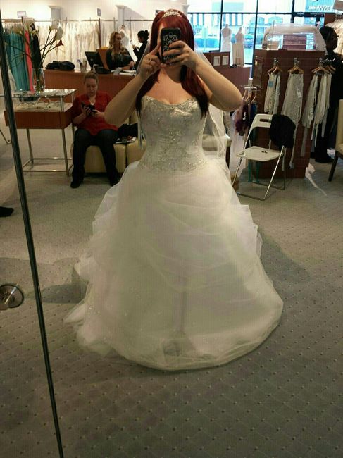 So excited to finally have picked a dress! It's the one I've loved for like 8 years (long before marriage was an actual thought). Alfred Angelo's Belle dress. We're adding "twinkle tulle", more swoops, and rhinestones to the skirt to give it a more...