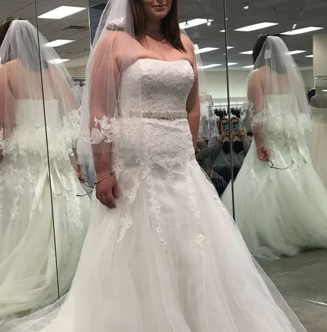 I said yes to the dress! This is actually a dress I never even would have imagined but I love it, and $500 under budget? Yass. Now, which veil? I love the cathedral but I don't want it to be " too much". I'm getting married indoors but not in a...