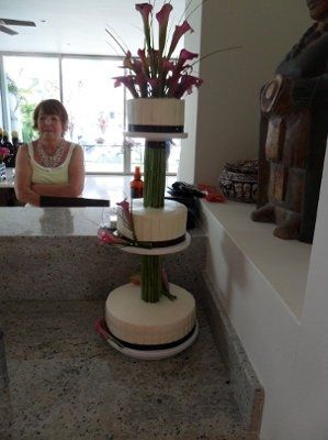 Hi Everyone! I just booked my florist and was trying to decide on the design for our wedding cake. Our flowers will be gerberas and roses (see photo attached) with some wax flowers sprinkled in. We are having a small wedding (about 60 people). We are...