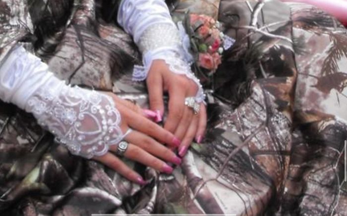 My husband is really into hunting and fishing. I feel it is only fair for him to help me pick my dress, since i told him what he had to wear. We found this dress and decided on a camouflage dress. He would have on a camouflage vest. Here is a pic of...