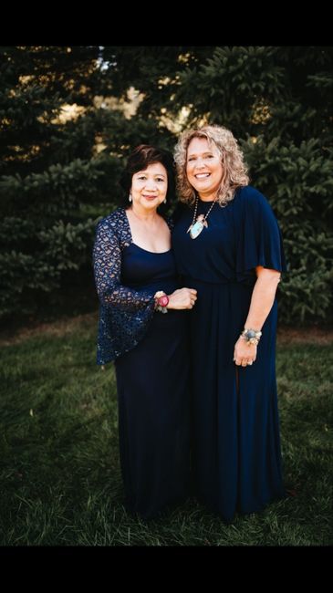 My mom is struggling to find something that is both no frumpy, is flattering, and is "age appropriate" (her words not mine). I was curious where other moms had luck. Looking for a formal, floor length gown. Pictures appreciated!