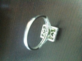 I love love love my ring. I am just loving the fact that he had to have it made because I wanted a colored stone in the center, so underneath the setting there are two hearts that he asked the maker to put in! It is adorable so I stated that it...