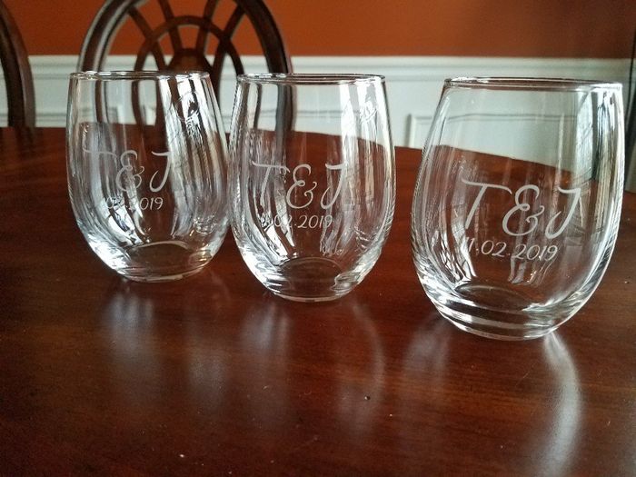 We decided to etch the glasses ourselves. I just finished my first set of wine glasses. 12 down 88 to go. I really like how they turned out. What you think? What are some of the major dyi's you are doing?