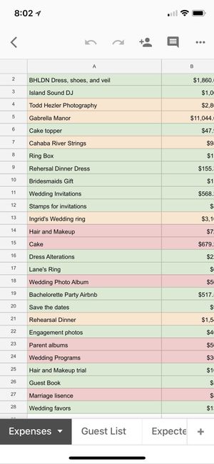 So right now we've got a wedding/reception venue, bridal party, officiant, florist and photographer. We have yet to figure out if we can budget in a dj or not. We will be meeting with the catering manager next month to determine how much that will...