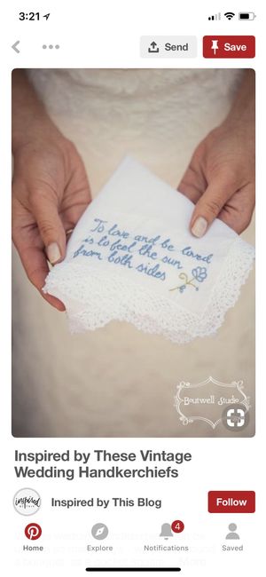 Normally I am so good at this stuff but my brain is fried from all this planning. My last gift to purchase is for my FH Aunt who will be reading one of the readings at our Catholic ceremony. I want to get her a personalized handkerchief that says...