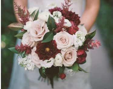 My colors are burghandy and rose gold and it's in April what flowers do you think would look good?