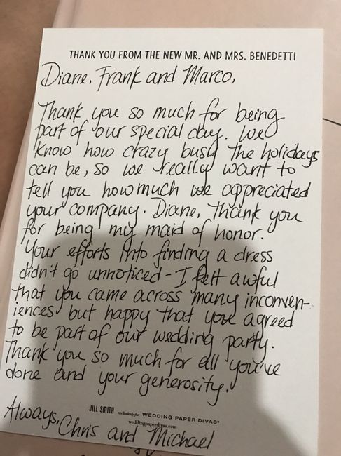 I'm starting to write our thank you cards tonight. I wanted to know if my message to my MOH/ SIL sounds ok.