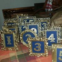 3579 days agoJust wanted to share, DIy Table Numbers officially fnished. Mismatched frames found over last 8 month for pennies, Painted gold with Rustoleum Gold (love that stuff) then Navy blue cardstock and wood numbers from scrapbooking section painted gold. I...