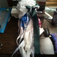5704 days agoOk, we've all seen everyone's gorgeous ceremony bouquets, but who's got the most fantastically awful rehearsal bouquet? Tradition (according to my mom at least) is that you use the ribbons and bows from gifts you get at your shower...one of mine even...