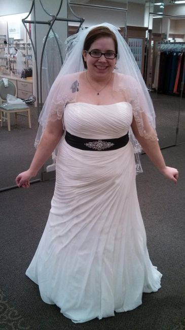 Hi All! After a hard decision, I said yes to the dress! The shopping experience wasn't so great because I had an awful, awful consultant, but im very happy with my dress. Its perfect! I covered my face cuz I had such a strange look going on. Lets see...