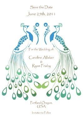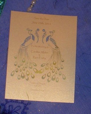 1. Peacock Centerpiece (I found the vase at Goodwill, and just couldn't resist). This one will be on our welcome table. 2. Save the date (sent out last week) 3. Invitation mock up. Still more work to do on this, but its a beginning. Couple more to...