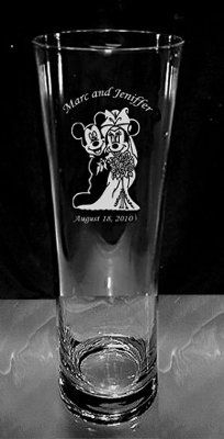 Well I have a mickey and minnie theme for the wedding and I've found the cutest vases with mickey and minnie in wedding clothes and it would have our names, date, etc..well they are 30 a vase and that is sooo not gonna fit in my budget. I was...