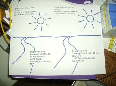 now just to get them printed. I drew a sun and a road leading into the distance and typed the info over the top. its going to look good on light blue card stock!