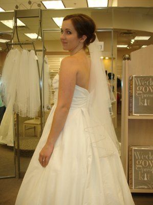 I finally got pics of me in the dress. This is just Davids Bridal sample, mine is in white not ivory