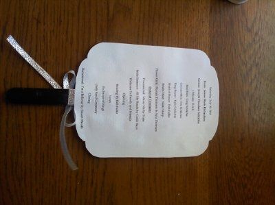 Just started my DIY paddle fan programs. We are having a backyard wedding in July and thought these would help the guests keep cool. Was just going to buy them but they were like 20 dollars for a dozen times 10, nope I don't think so. Cardstock,...
