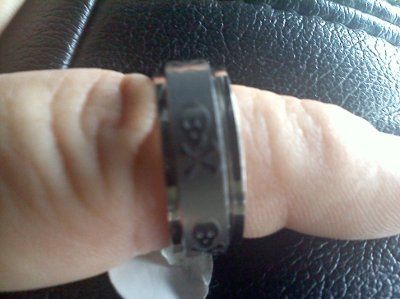 Stop at a truckstop and look down at the counter. There was a display of cheap rings. Got to looking and found a perfect ring for our priate wedding. Its a spining band. We have plain titanium rings to wear, but thought this would be really cute for...