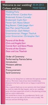 I have dozens of DIY projects going and now I was told I "HAVE TO HAVE" a wedding program. Everyone will know why they are there and we are having the DJ introduce the wedding party by name and title at the beginning of the reception. For example:...