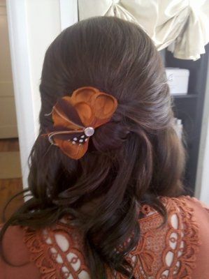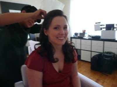 I love, love, LOVE what she did with my eyes. Still working out the hair/wispies in front. My mom is all about them, as is FH. MOH hates them and I am kinda neutral... I am changing into the feather barrette for the reception.