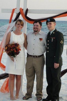 My wedding of course had glitches and our time together was short (he has to report back to base and I back to school) but I loved every moment! pic 1- during ceremony pic 2- presentation as mr. and mrs. pic 3- my mom, his dad, and us