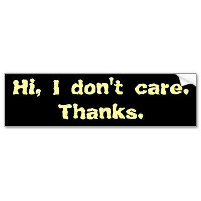 Haha! That's all I got left... I have totally hit the I don't care anymore mode! My bach party is this weekend, and the invites have the wrong time, AND I didn't get one.. haha ehhh who cares! What are you saying who cares to??