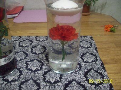 ha ha! finally got the look I was going for. Showed my future daughter in law and she LOVED it! I am tickled pink! the first pic is an artificial rose and no water beads. the second is a real carnation with water beads holding it in place. The trick...