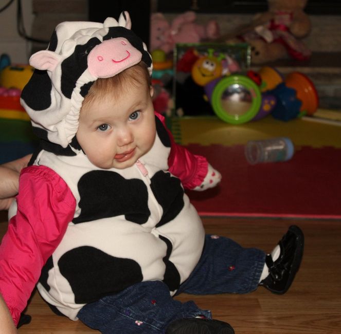Looking for ideas for Halloween costumes for my little girl. She'll be about a month old when the date rolls around. Any suggestions? EDIT: I found her costume. This year my Princess will be a cow. Thanks Krystal for giving me the inspiration Best...