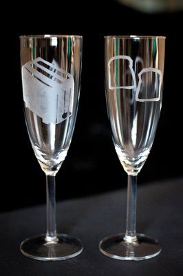 Check this out! I thought you needed a machine to do this. Apparently it's super easy! http://offbeatbride.com/2011/07/etch-your-champagne-glasses