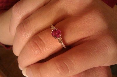 So, as some of you know, I don't have an engagement ring yet. Well, Fh just asked me which one I like out of two that he hed found and he said that he is going to be getting it very soon. Well, I LOVE pink...so the first one he found is a pink...