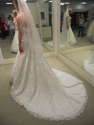 ok so in a prior post i put pics up of 2 dresses i fell in love with and i was going back to make my final decision, well i went back on april 3rd to try them on again and i found another dress. i wanted to try on atleast 1 more gown just to be sure...