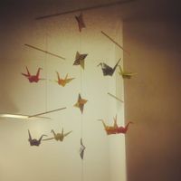 4853 days agoSo happy with it! I made the mobile with a thin wooden dowel and string... I folded the cranes myself and DH made the ninja stars for the center! I wish I could take a better picture to show the colors better, but I am very pleased with this! I'm on...