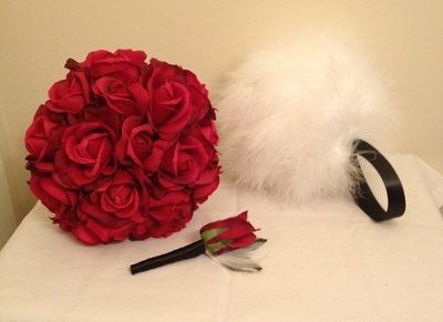 I really don’t like flowers, really really don’t!! so this is what I’m thinking—My centerpieces are Feathers and so could my bouquet!! I LOVEEEEEEEE this idea!! This means I won’t have to purchase any flowers at all!!