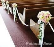 someone please help me with easy, cheap and simple pew decor ideas. Wedding is in 5 days and FH is on my ass now that he wants ribbon or flowers or something in the pews. Help!