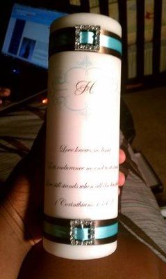 I have been inspired by many of the creative ladies on here, and have done a couple DIY projects myself. The first two are of my centerpieces, and yes that is the same cup in both shots, it changes colors. I will be adding more stuff to put around it...