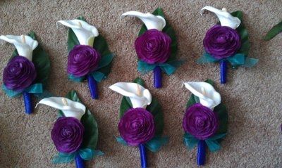 Hey ladies! I've been trying to work on my DIY bouts today. I've come up with two different ones. Which ones do you like? I've also attached a picture of the bridesmaids bouquets so you can see what they will be matching. The bridesmaids will be in...