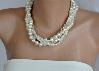 Hi all! Below is my dress. I'm having serious issues trying to figure out what kind of jewelry to wear with it. My dress is a Paloma Blanca 4165. It has a flower embellishment on the hip and in the middle of the flower has different pearls/crystals...