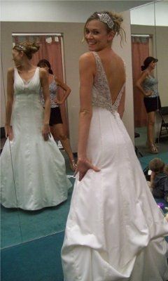Show me your dress and then the dress on the model! I really never like the dresses on models! I haven't seen one model that looks better than the bride actually wearing it! Here is mine! Sorry for the crappy cell phone quality!