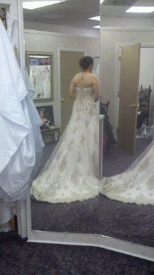 So one of my bride's maids came into town this week and we went dress shopping. Went to 2 stores...David's Bridal and a boutique. Wasn't feeling David's Bridal too much, found one that I liked okay, but nothing that said WOW. Went into the boutique...