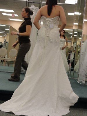 I went shopping for dresses today and found my dress! It was the first place I went to (David's Bridal) The last dress I tried on...It has a little bit of everything I was looking for. Lace, Beading/Crystal, lace up back, and Sweeheart neckline. And...