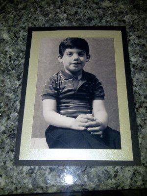 Happy Day :-) I am working on our wedding table numbers and have this idea of using our childhood photos to help mark the tables......but where/ how do I stick the table number on? The picture is one side of what I have done, the other is identical...