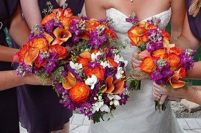 OR should I do purple flowers and green flowers with light gray dresses? I like roses, calla lilies, day lilies are pretty, and so are delphiniums. Regardless of the combo, I prefer only two kinds of flowers in a bouquet. These bouquets will be my...