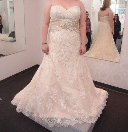 I got a phone call last week that my dress came in so I HAD to visit it after all the stress. It was too big, but not as big as I thought it would be! Love the ivory instead of the gold, I can't wait to get it fitted Here it is!