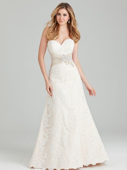 I went to David's Bridal yesterday and really liked three of their dresses, although the lace dress is my favorite. What do you guys think? Is it the wrong shape for my body type? :-/ I blacked out my face because I looked terrible! lol